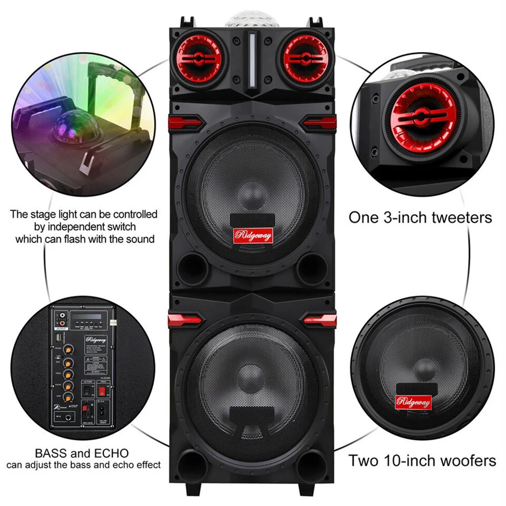 Unmatched Sound Quality: Experience powerful, room-filling audio with the dual 10" woofers and X-Bass technology, delivering crisp, thunderous sound perfect for parties, outdoor events, and karaoke nights.