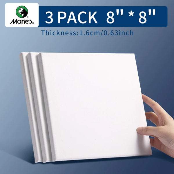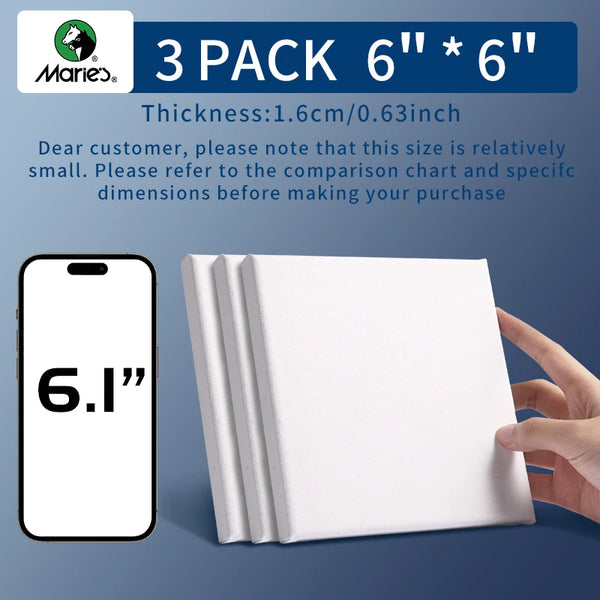 AOOKMIYA Marie's 3 Pack Stretched Canvas with 6x6", 8x8", 12x12", 12x16" and 16x20", 100% Cotton Primed White Rectangular Wooden Framed
