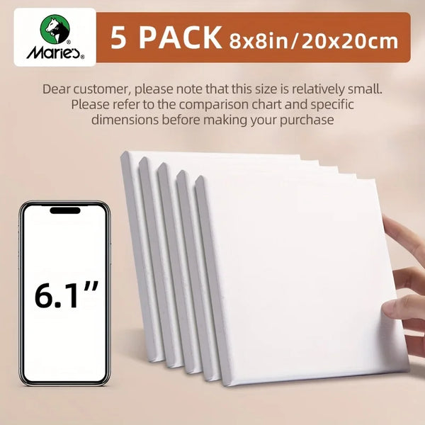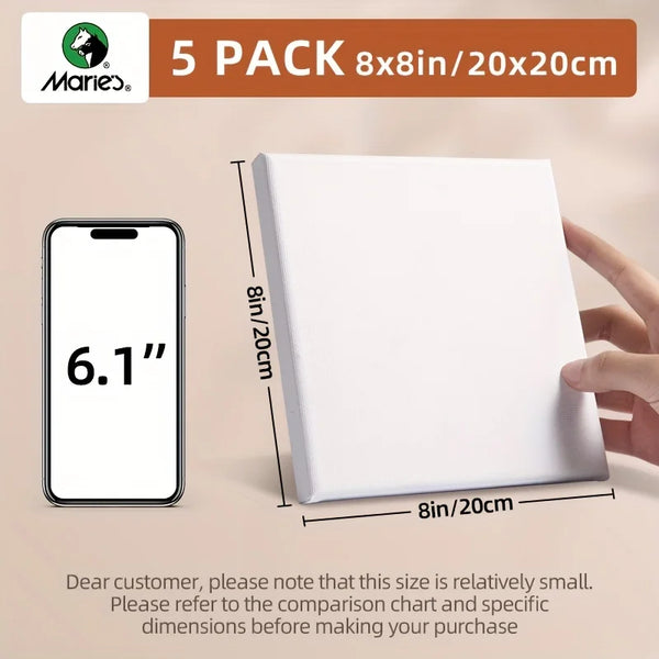 AOOKMIYA Marie's 8x8" Stretched Canvas Blank 5 Pack, Small Size 20 x 20 cm,For Acrylic Pouring Painting,Oil,Perfect for Adults & Hobbyist