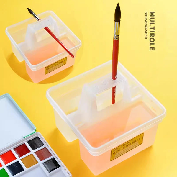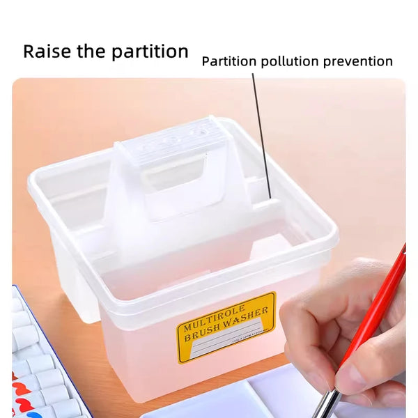 Product Information Product Name: Multi-functional Pen Wash Bucket Material: Plastic Size: L130mm*H80mm L130mm*H80mm Use: Acrylic, gouache, watercolor are available. Features: multi-color optional, thick material, high strength, drop-proof. Multifunctional and practical.