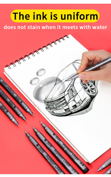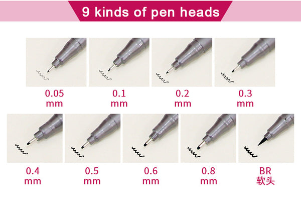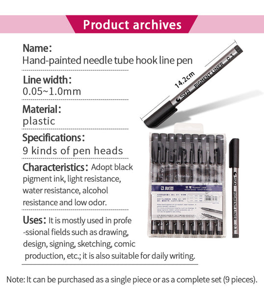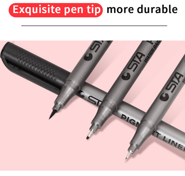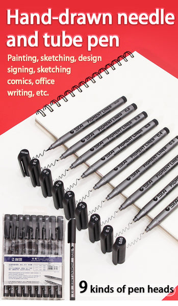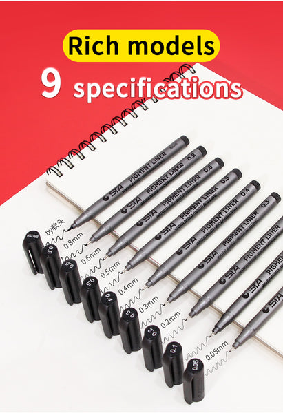 STA 9Pcs/Set Tip Fine Liner Art Marker Drawing Pen Fade Proof Micron Black Sketch Water Marker Pen for Manga Office School Set