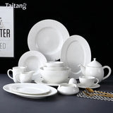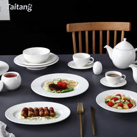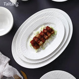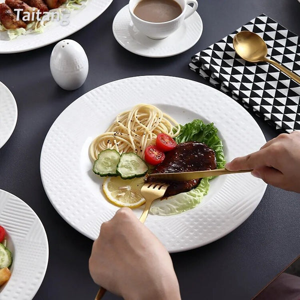 Restaurant Elegant White Ceramic Tableware Solid Color Texture Dinnerware Sets Ceramic Bowl And Plate Set Ceramic