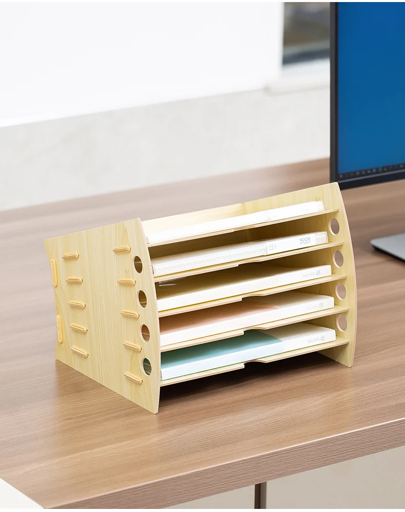 Escritório de mesa revista arquivo rack de madeira eco-friendly suporte de arquivo organizador bandeja para mesa