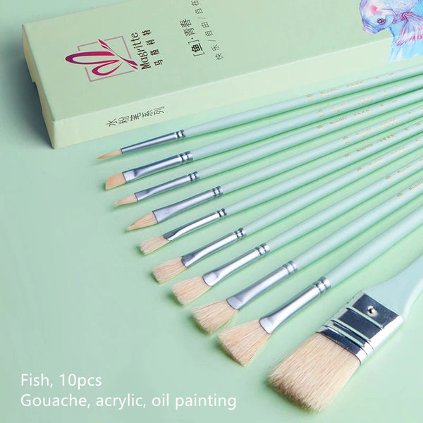 7pcs/10pcs Magritte gouache brush set, art special Bristles oil brush, fishtail fan pen acrylic brush, professional art supplies