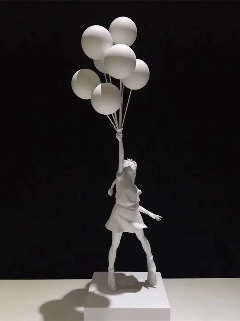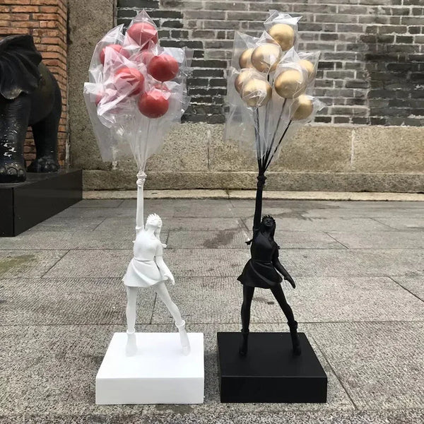 Luxurious Balloon Girl Statues Banksy Flying Balloons Girl Art Sculpture Resin Craft Home Decoration Christmas Gift 57cm