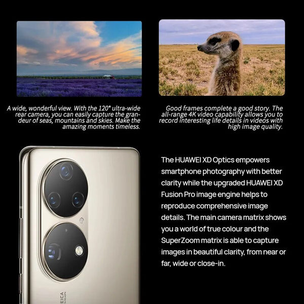 The HUAWEI XD Optics empowers photography with better clarity while the upgraded HUAWEI XD Fusion Pro image engine helps to reproduce comprehensive image details. The main camera matrix shows you a world of true colour and the SuperZoom matrix is able to capture images in beautiful clarity, from near or far, wide or close-in.