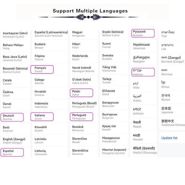 YES (Russian,English,Spanish,Portuguese,Italian,German,French,Japanese,POLISH) |