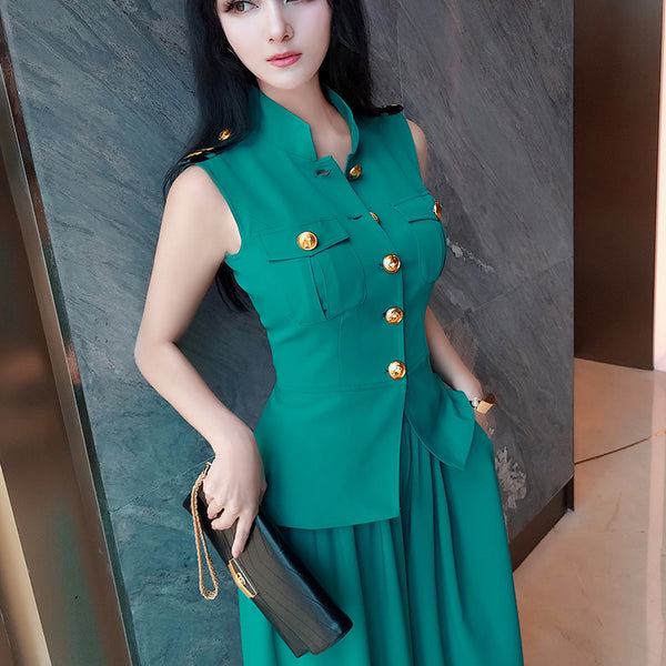 AOOKDRESS Professional Women's Pants Set Summer New Temperament Sleeveless Small Suit Jacket Wide Leg Pants Culottes Two-piece Set