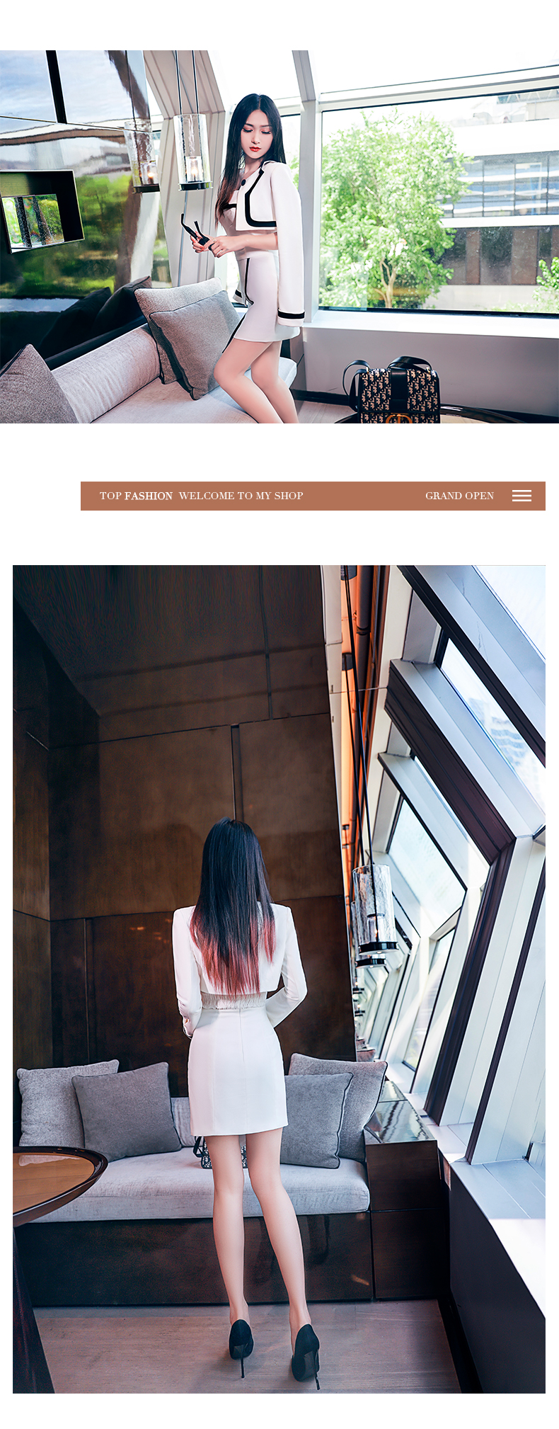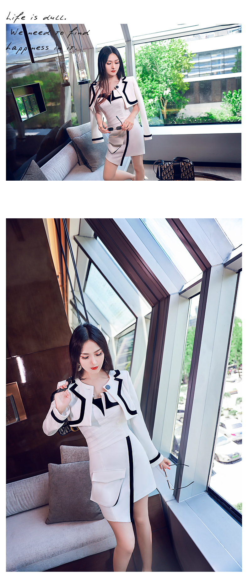 Zipper or button: Middle button on the front of the jacket, no pocket; middle zipper on the back of the skirt, with pocket