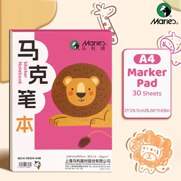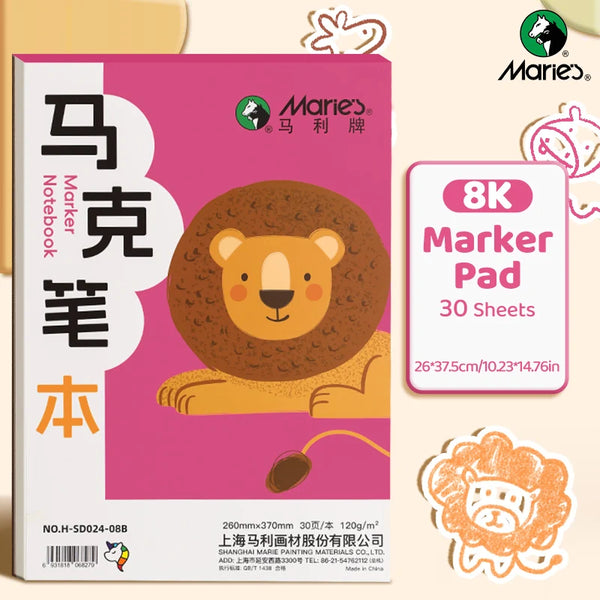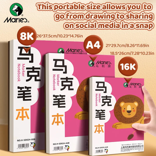 AOOKMIYA Marie's 30 Sheets Marker Paper Pad 16K/A4/8K Bleedproof for Alcohol Markers,32 lb/120 gsm Drawing Sketchbook for Adults, Student