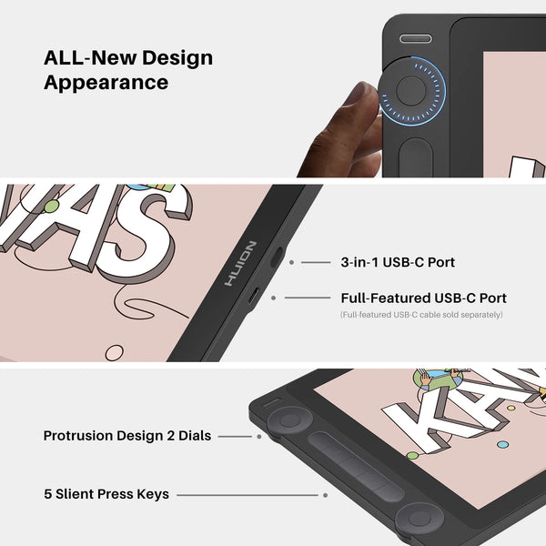 Huion Kamvas 13 Gen 3 Drawing Display 13.3" Art Tablet+Anti-sparkle Canvas Glass, 99% sRGB, PenTech 4.0 16384 Pen Pressure