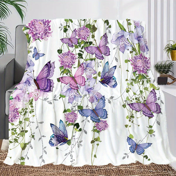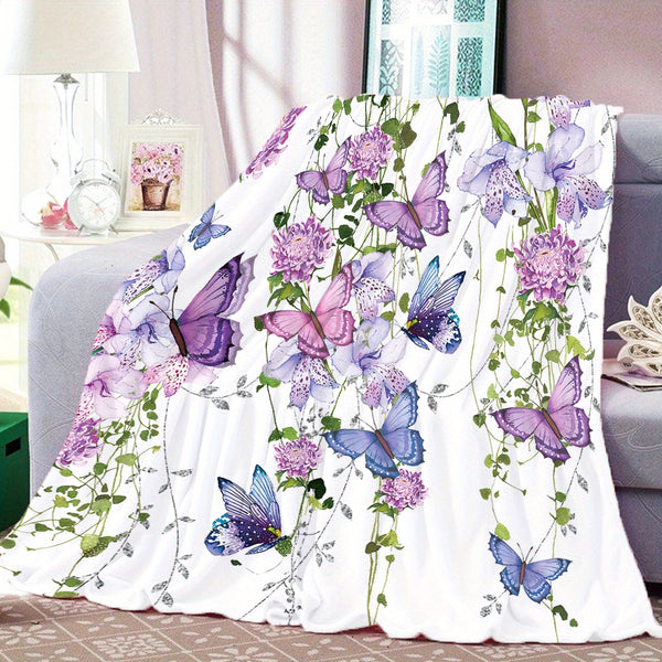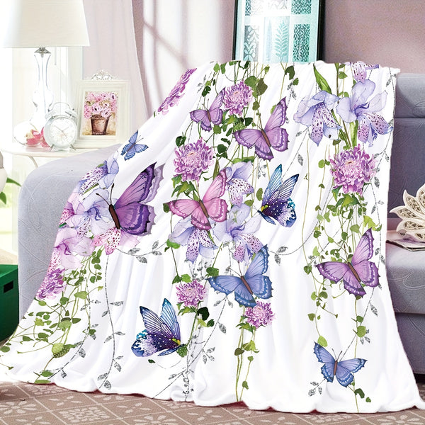1pc Soft and Comfortable Flower and Butterfly Print Blanket - Perfect for Travel, Couch, Bed, and Office - Ideal Birthday Gift for Boys, Girls, and Adults - All-Season Availability