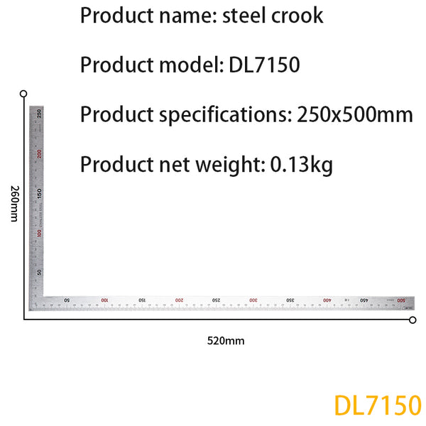 Deli DL7150 Square Steel Ruler Specification:250x500mm Stainless Steel Material Measuring Tool Used By Woodworkers, Electricians