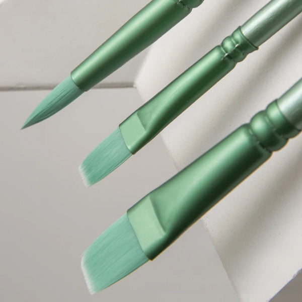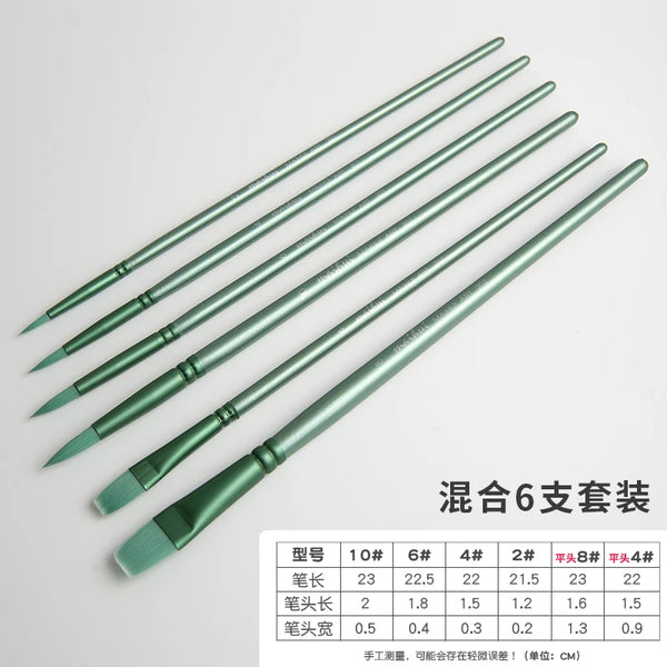 AOOKMIYA Watercolor Brush Set Nylon Hair Round Head Flat Head Fresh Green Pole Brush Art Students Special Painting Supplies