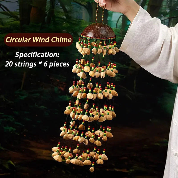 Fruit Shell Wind Chime Handmade Meditation Bells Outdoor Sound Healing Coconut Shell Oleander Wind Chimes Window Decoration