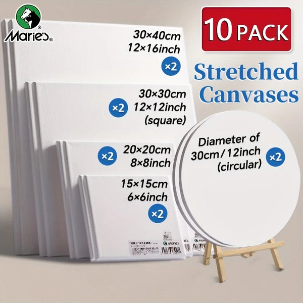 AOOKMIYA Marie's 10Packs of Stretched Canvases with Frame 6x6,8x8,12x12,12x16in,Circular12in Blank Canvas Bulk Set for Drawing for Adults