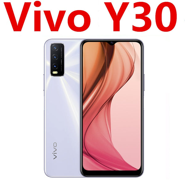 Stock Vivo Y30 4G LTE Smart Phone Fingerprint Face ID 5000mAh 18W Charger Snapdragon 460 8GB RAM 128GB ROM 6.51" IPS 4 Cameras