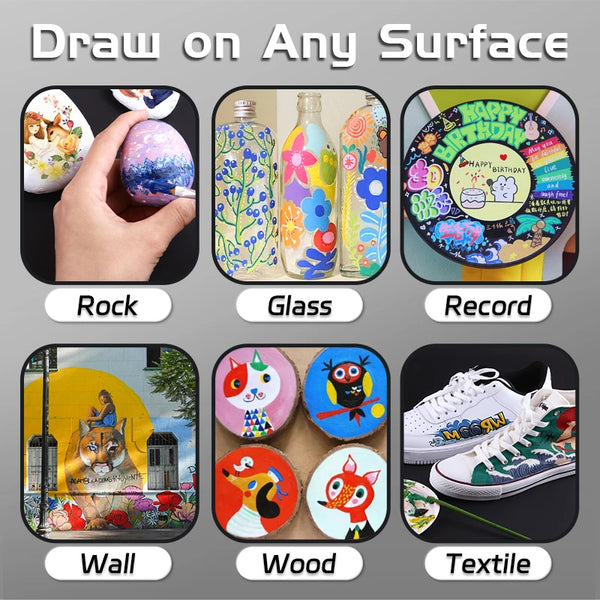 AOOKMIYA 5pcs White Acrylic Marker,Permanent Pen Art Supplies for Black Paper,Tire,Plastic,Stone,Metal,Painting for Artists,Beginners