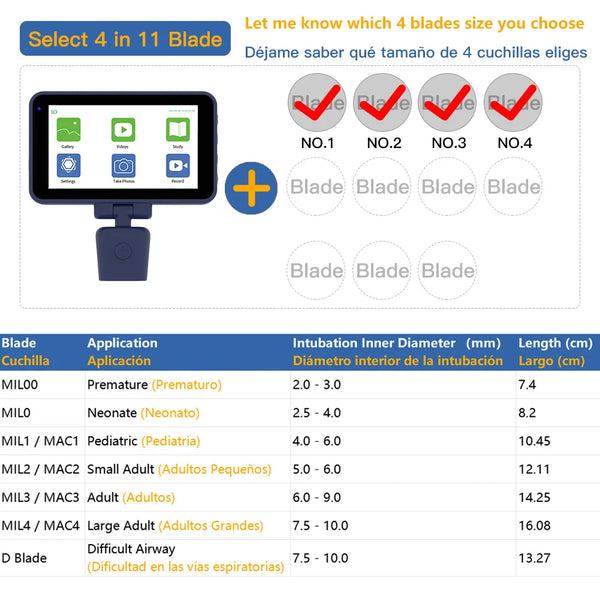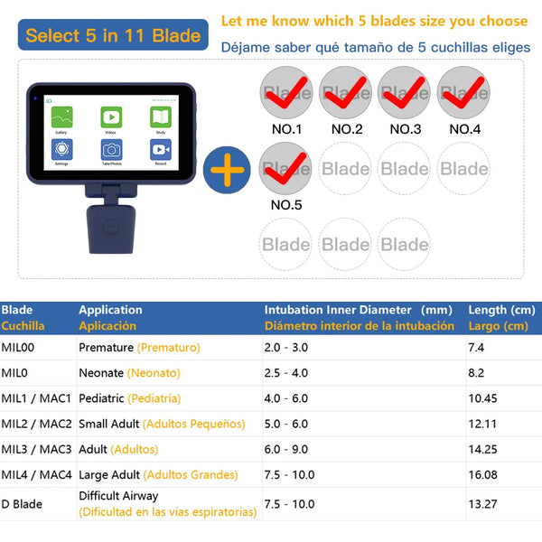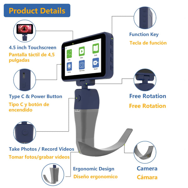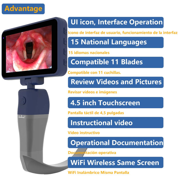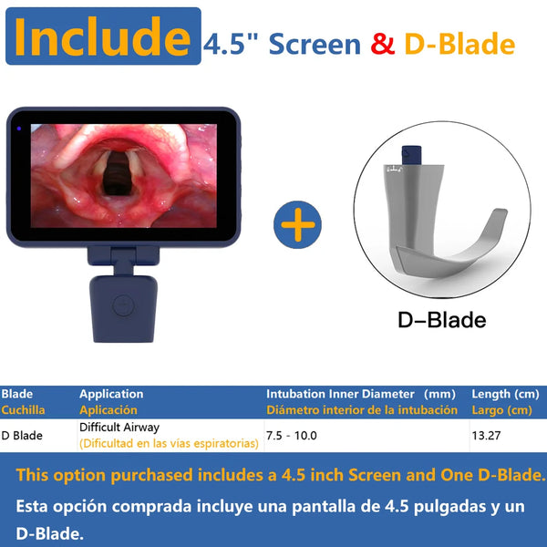 CR-45 Anesthesia Intubation Video Laryngoscope, 4.5 inch HD Touchscreen, Compatible with 11 Reusable Laryngoscope Blades