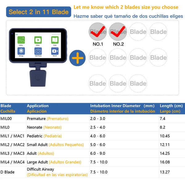 6 blades optional: MIL0、MAC1、MAC2、MAC3、MAC4、D-Blade Handle blade.