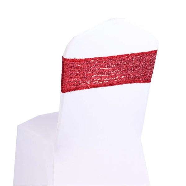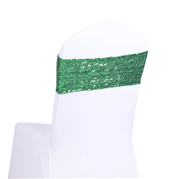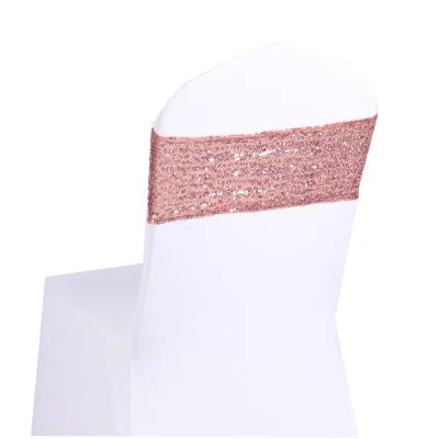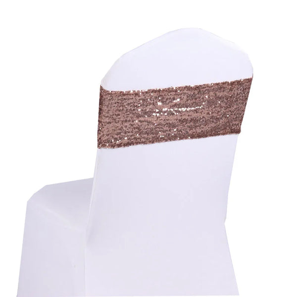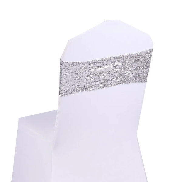 100pcs Shining Gold Silver Spandex Sequin Glitter Chair Sash Elastic Chair Bands Bow Ties Wedding Party Banquet Supply