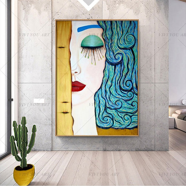 2020 Famous Painting Gustav Klimt Tear Abstract Handpainted Classic Artist Modern Abstract Portrait Wall Pictures For Home Decor