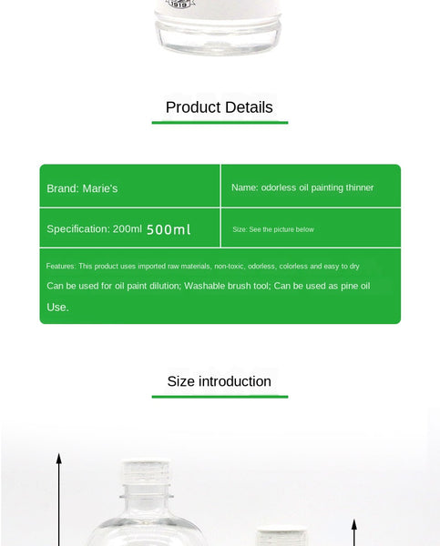 500ml colorless and odorless oil paint thinner, paint tinting pine oil, pen lotion, oil painting color tinting medium material
