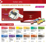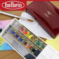 Japanese Holbein Professional Artists' Solid Watercolor Paints Set PN691 12 Colors Palm Red Box for Watercolor-painting Art Supplies