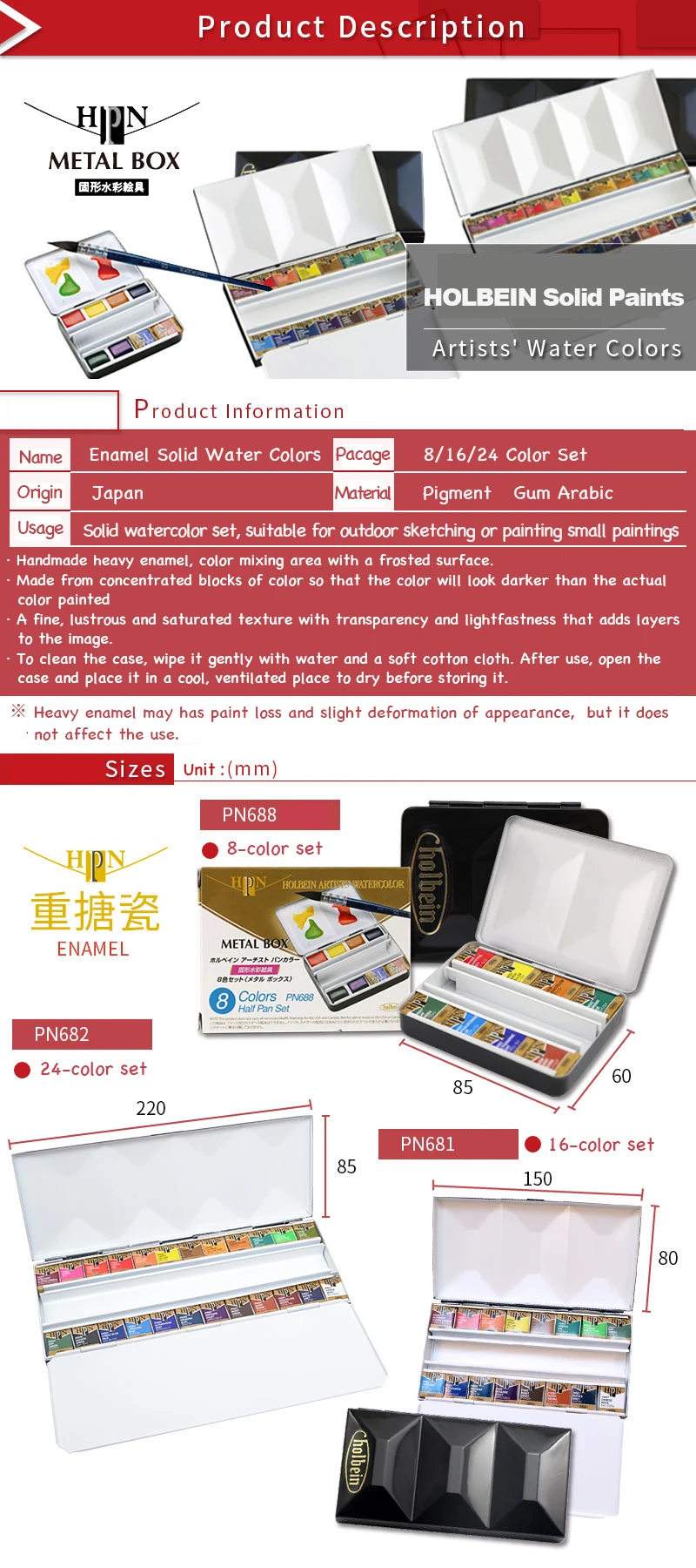 Japanese Holbein Artists Solid Watercolor Paints 8/16/24-Color Heavy Enamel Set for Watercolor-painting Art Supplies