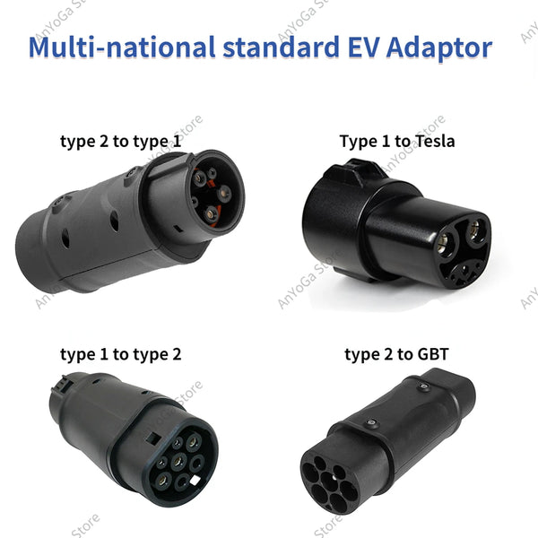 Electric Vehicle Charging Connector Type 2 to Type 1 J1772 EV Adapter Type 1 to Type 2 EVSE Charger Type 1 to Tesla EV Adaptor,andtype 1 to type 2