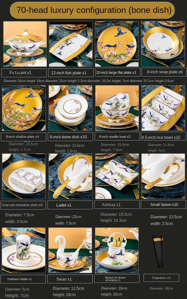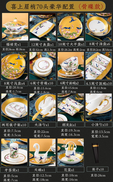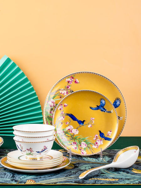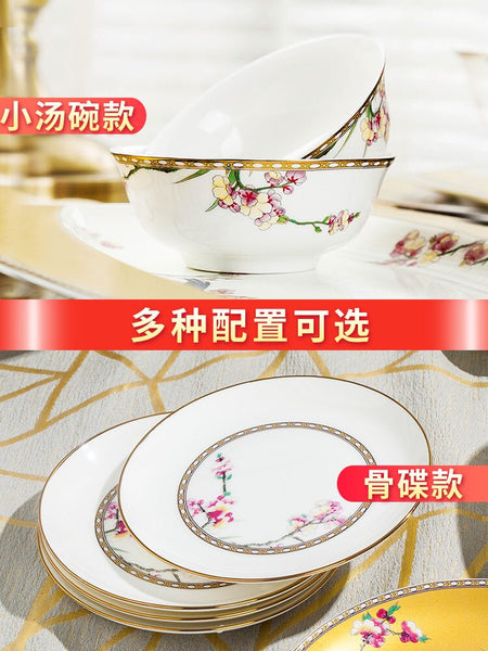 Casa chinês-estilo de luz de luxo dourado guarnição osso china utensílios de mesa europeu-estilo cerâmica tigela e placa combinação presente