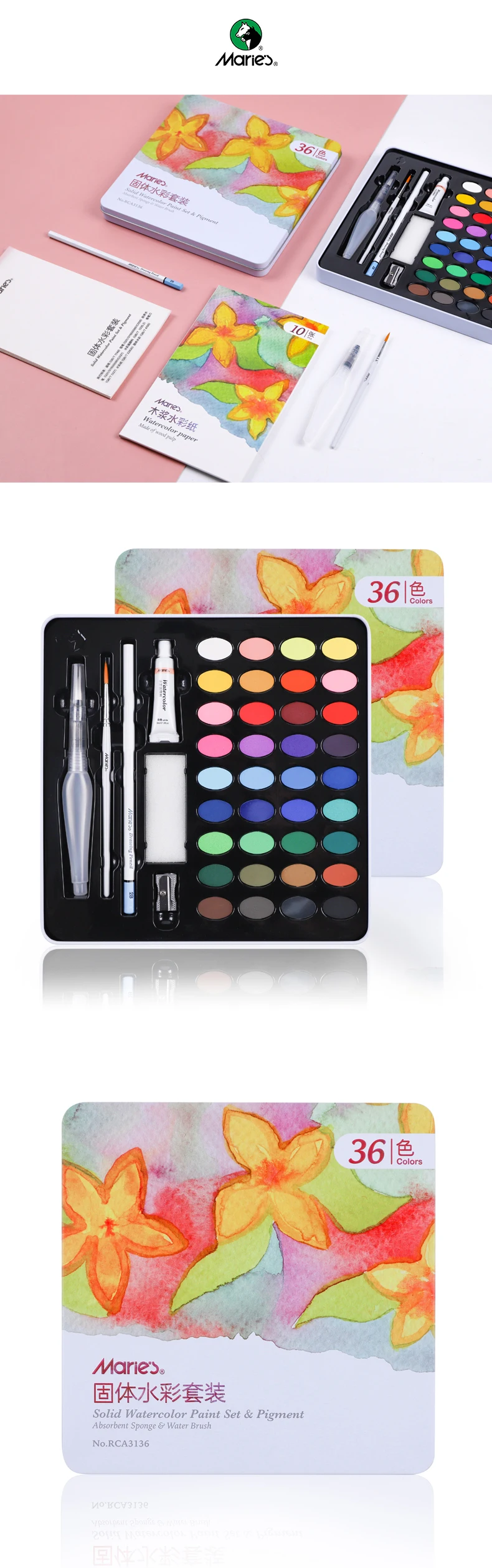 Conjunto de arte para iniciantes, conjunto de 36 cores em caixa de ferro, aquarela sólida, pintada à mão, para iniciantes, material de arte, 1 conjunto