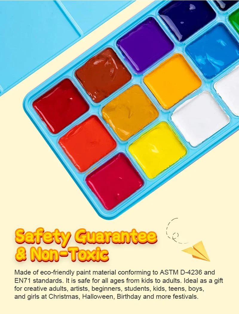 PIGMENTO DE ALTA QUALIDADE:Todas as tintas são grossas e cremosas não se deslocam ou ficam enlameadas, podem ser diluídas com bastante água e não racham ou desmoronam quando a tinta seca. Cor bonita e prática selecionada, melhor escolhida para o exercício diário.