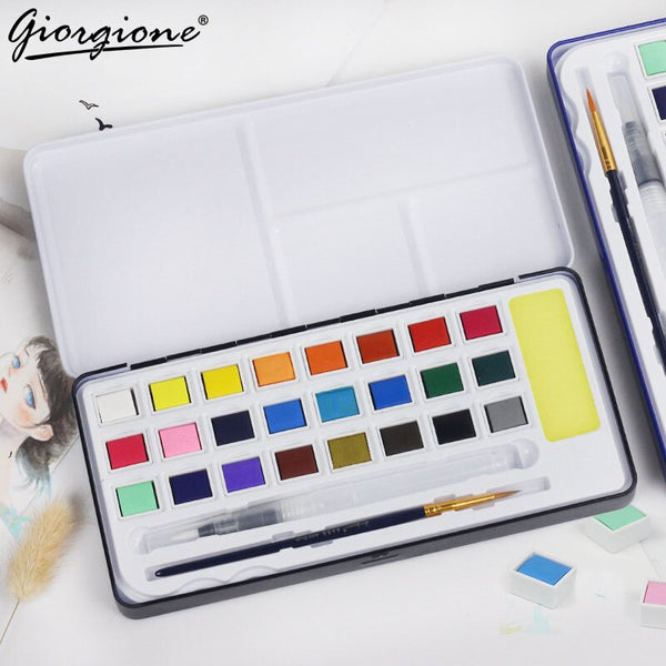 Conjunto de tinta aquarela sólida para iniciantes, conjunto de pintura com pigmento aquarela para desenho infantil, materiais de arte pintada à mão para meninas