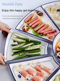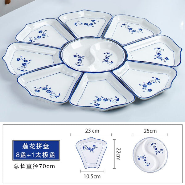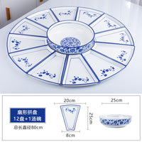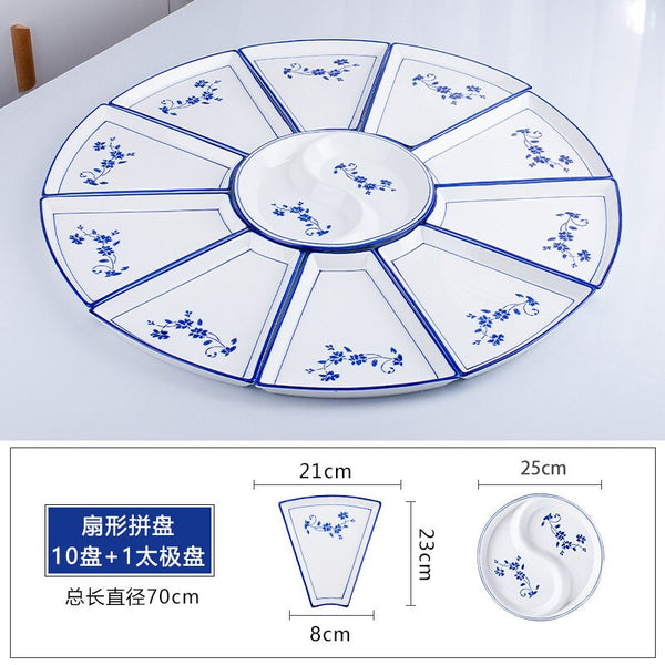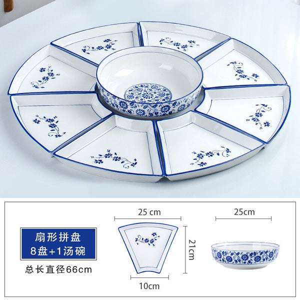 Conjunto reunião prato talheres combinação fan-shaped cerâmica mesa redonda ano novo placa tigelas e pratos domésticos