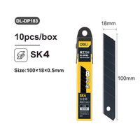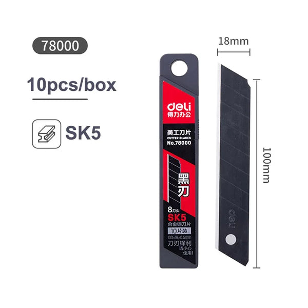 Deli 10pcs/box Knife Blade 18mm Width SK5 Metal Blades for Home School Suplies Art Craft Paper Box Cutting Utility Knife Tool