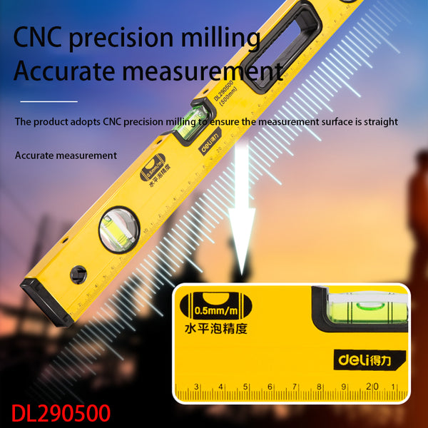 Deli DL290500 Fine Milling Bottom Level Ruler Length: 500mm Aluminum Alloy Strong Bottom Magnetic Measuring Tools Hand Tools