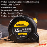 Deli DL9075P NylonCoatedSteel Tape Measure Specification 7.5mx25mm Carbon Steel TapeManganeseSteel Spring Design Measuring Tools