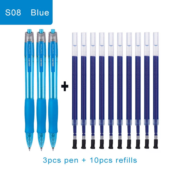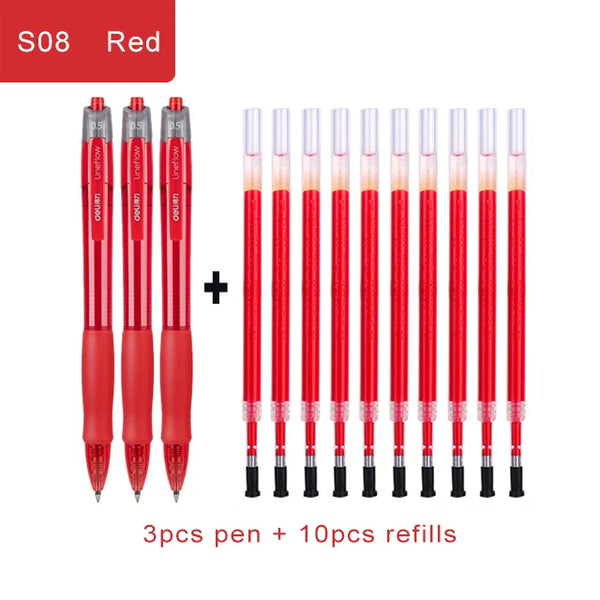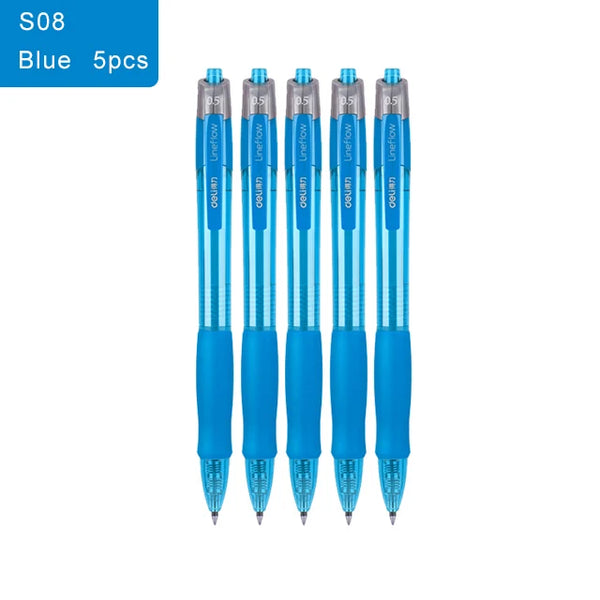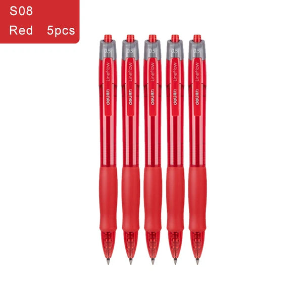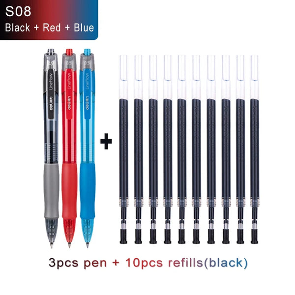 Deli Gel Pens 0.5mm Retractable Bullet Ballpoint Pen Blue Black Red Ink Refill for School Office Writing Stationery Supplies