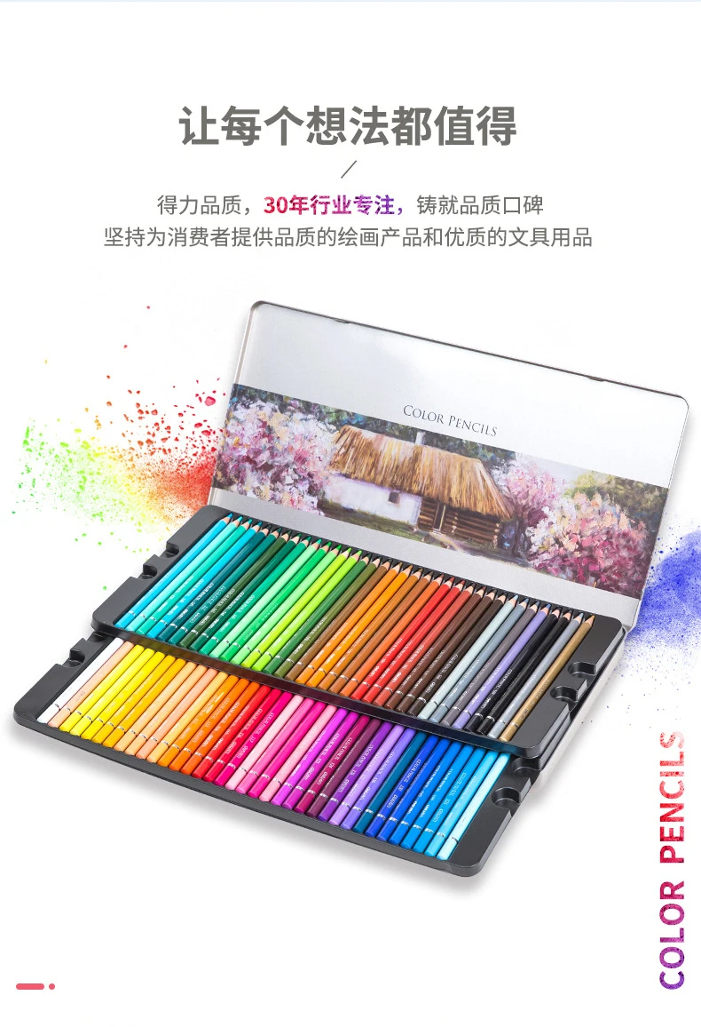 Deli Oil 72 Colors Tin Box Colored Pencil Professional Wood Color Pencils For Art Drawing Painting Sketch School Supplies