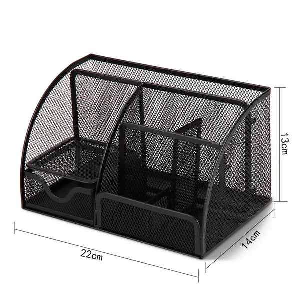 Deli Organizer Multifunctional Pencil Pen Holder Black Mesh Desk Metal Iron Storage Box Office Home Stationery Storage Case
