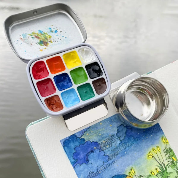 Empty Watercolor Palette Mini Travel Paint Box Metal Watercolor Paint Packing Box Going Out Sketching Painting Art Supplies