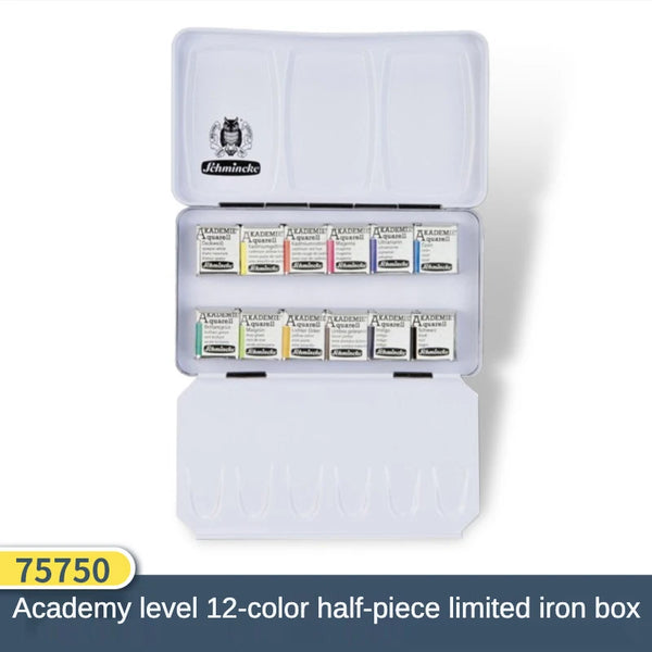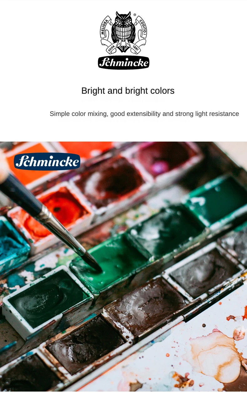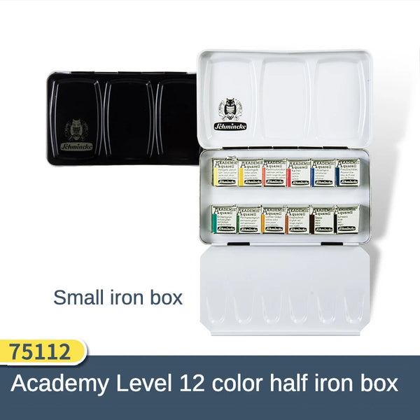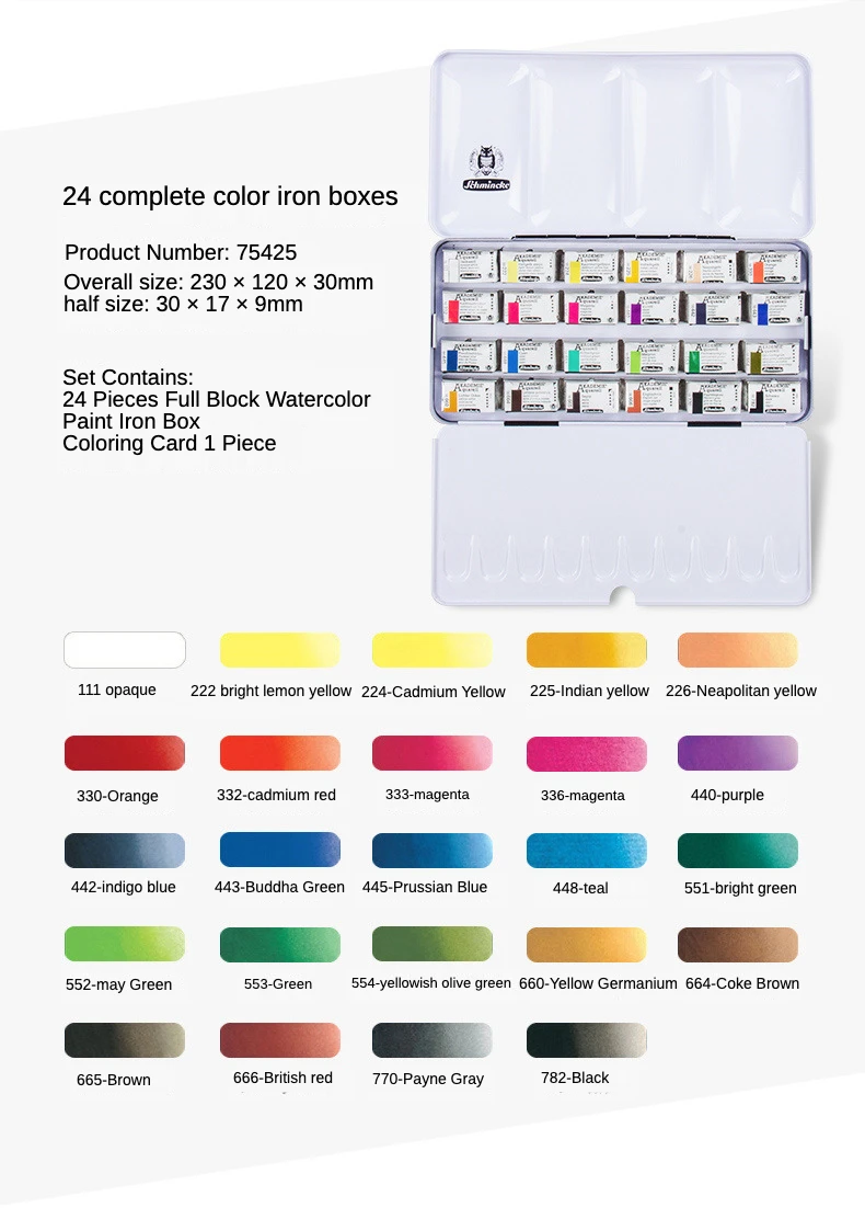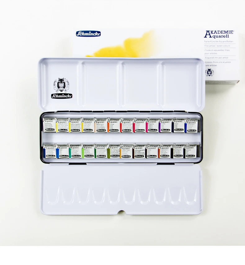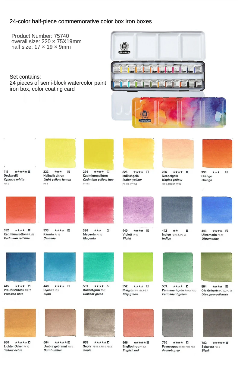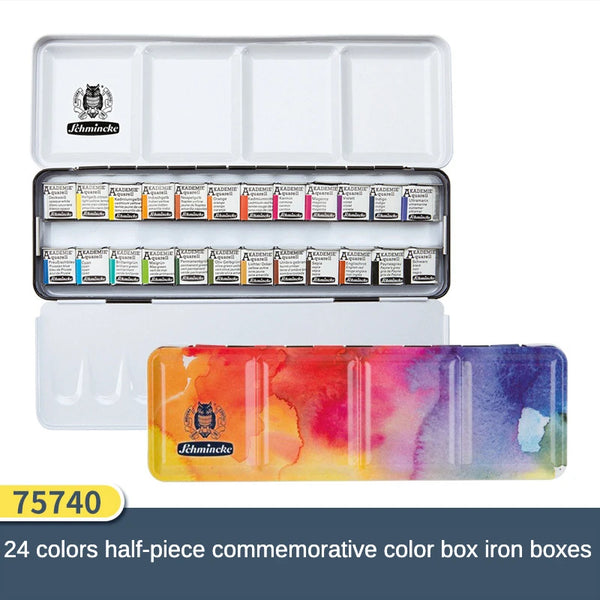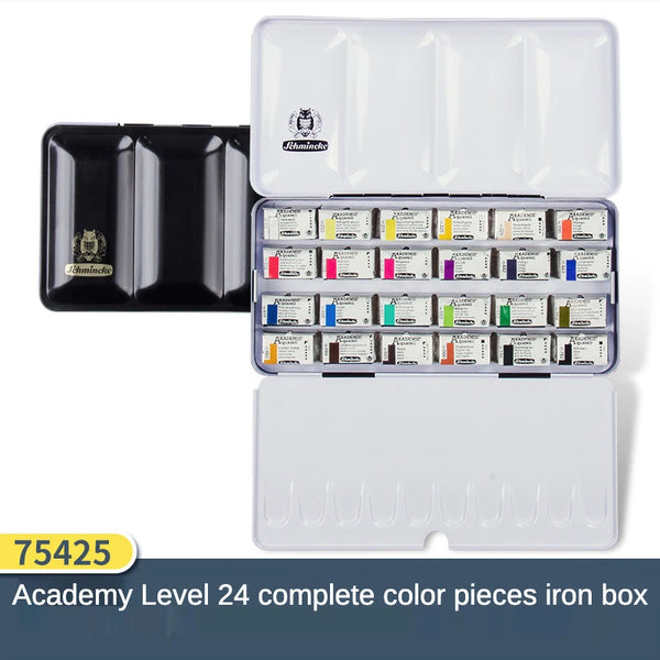 German Schmincke Solid Watercolor Paints 10/12/24 Colors Set Academy Grade Half Pans Iron Box Full Block Art Pigments Supplies