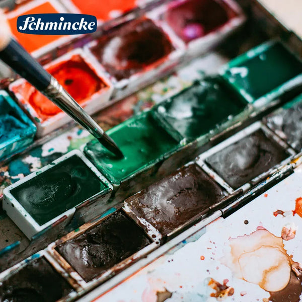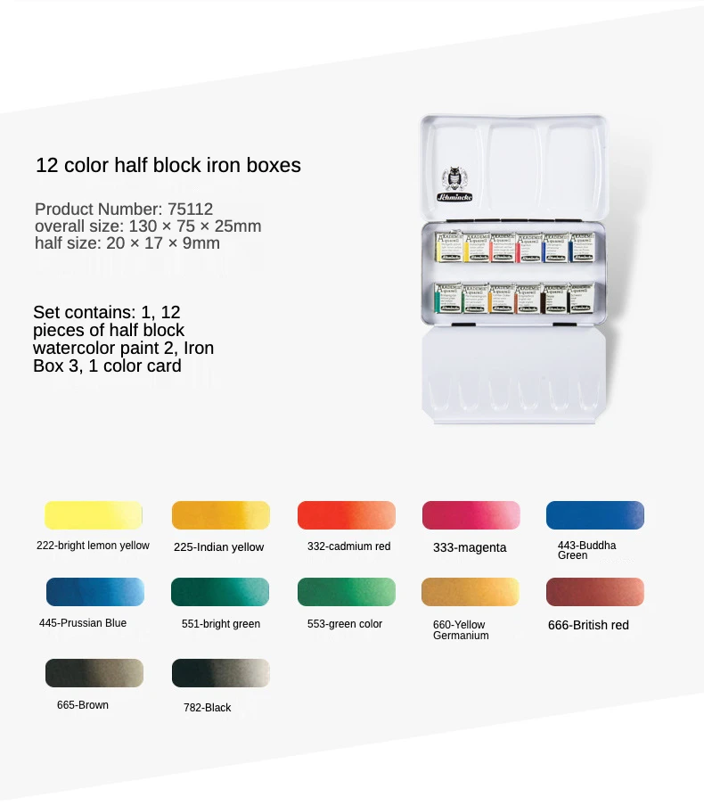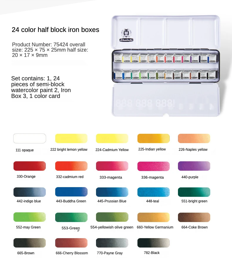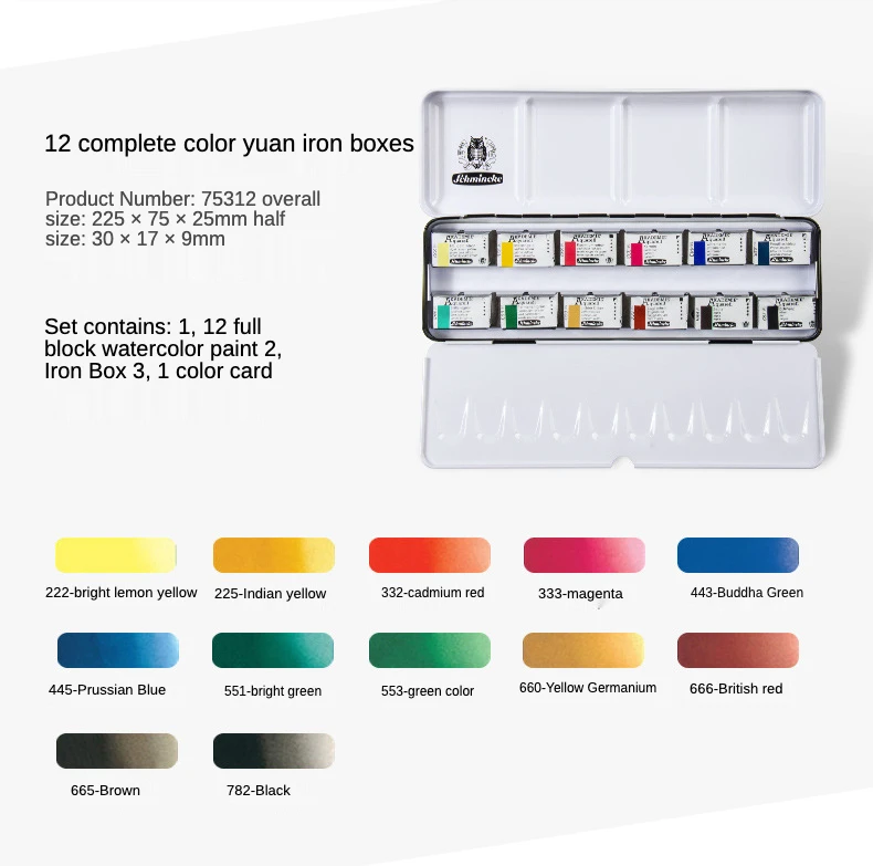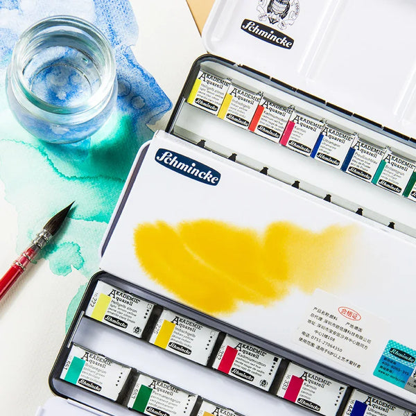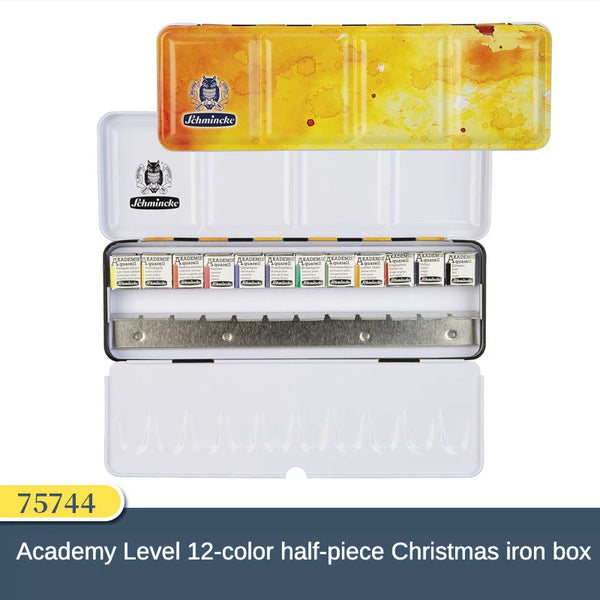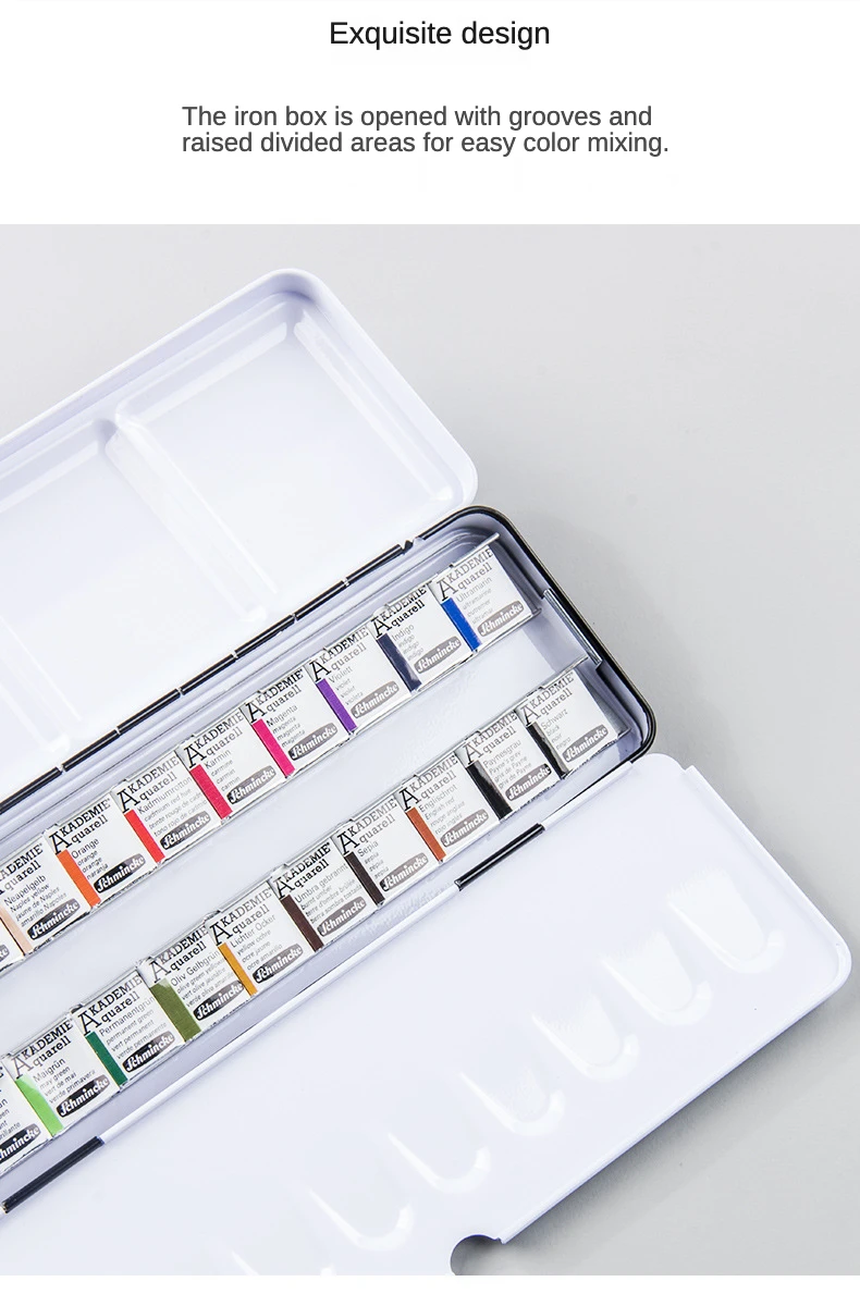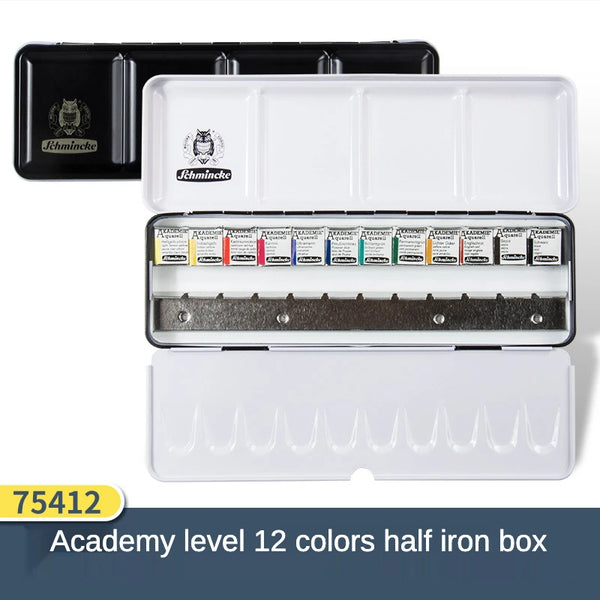 German Schmincke Solid Watercolor Paints 10/12/24 Colors Set Academy Grade Half Pans Iron Box Full Block Art Pigments Supplies
