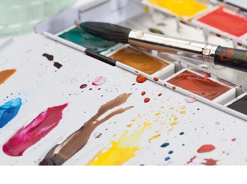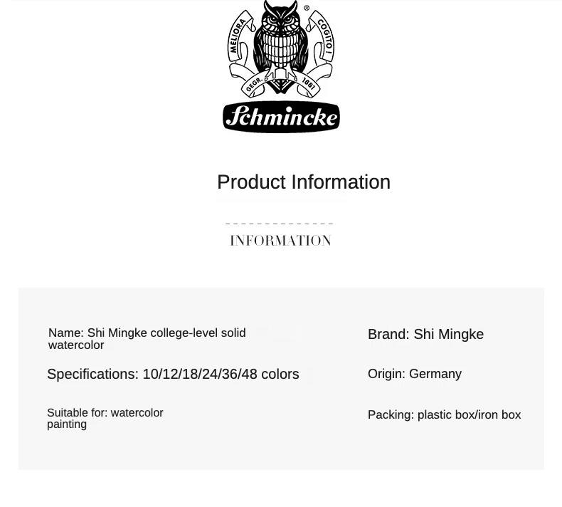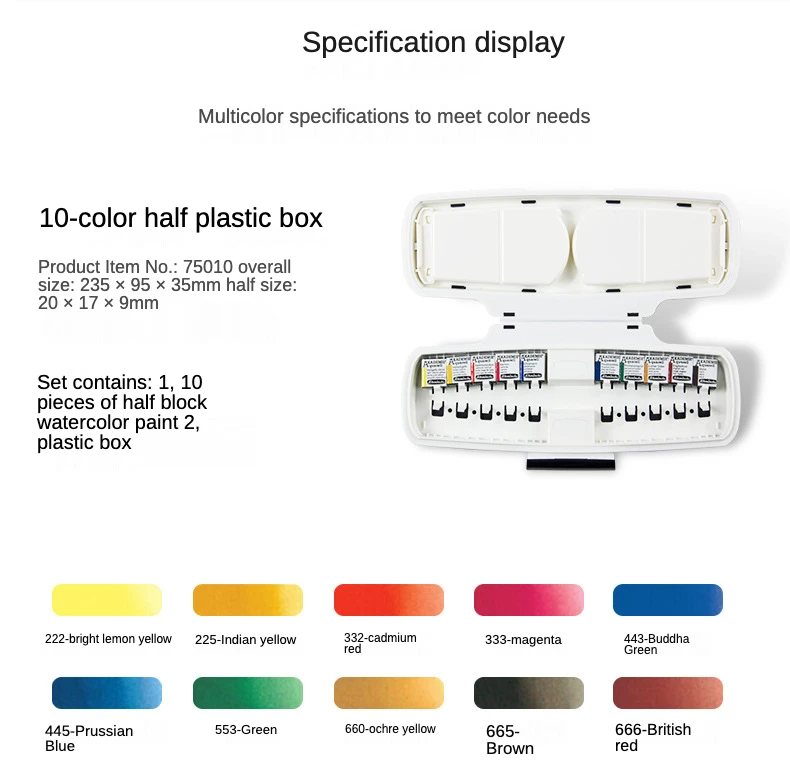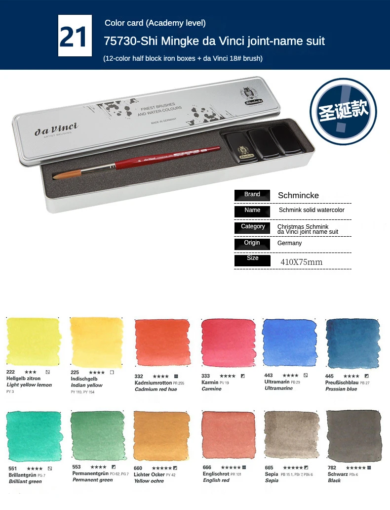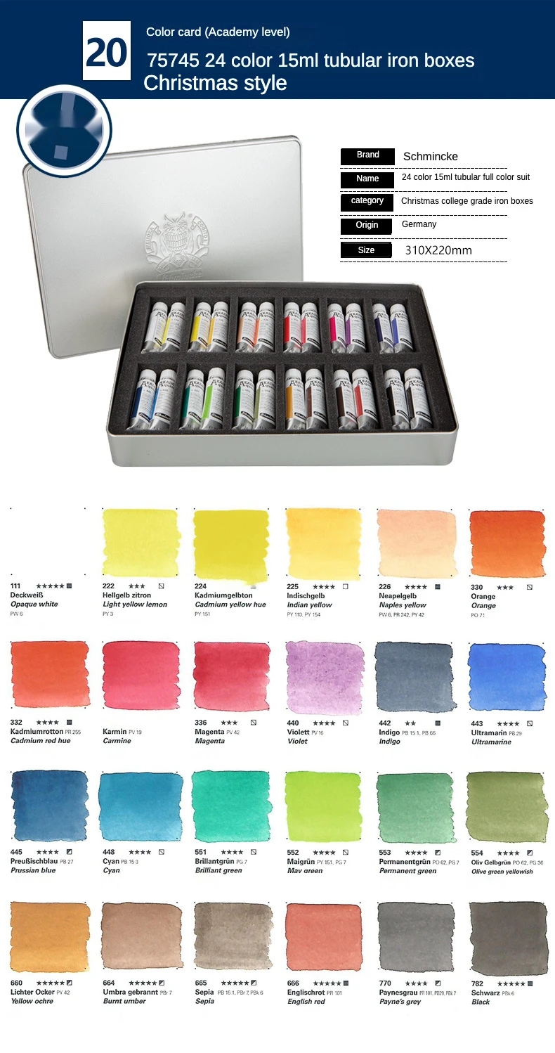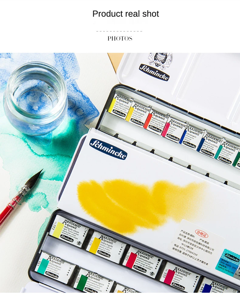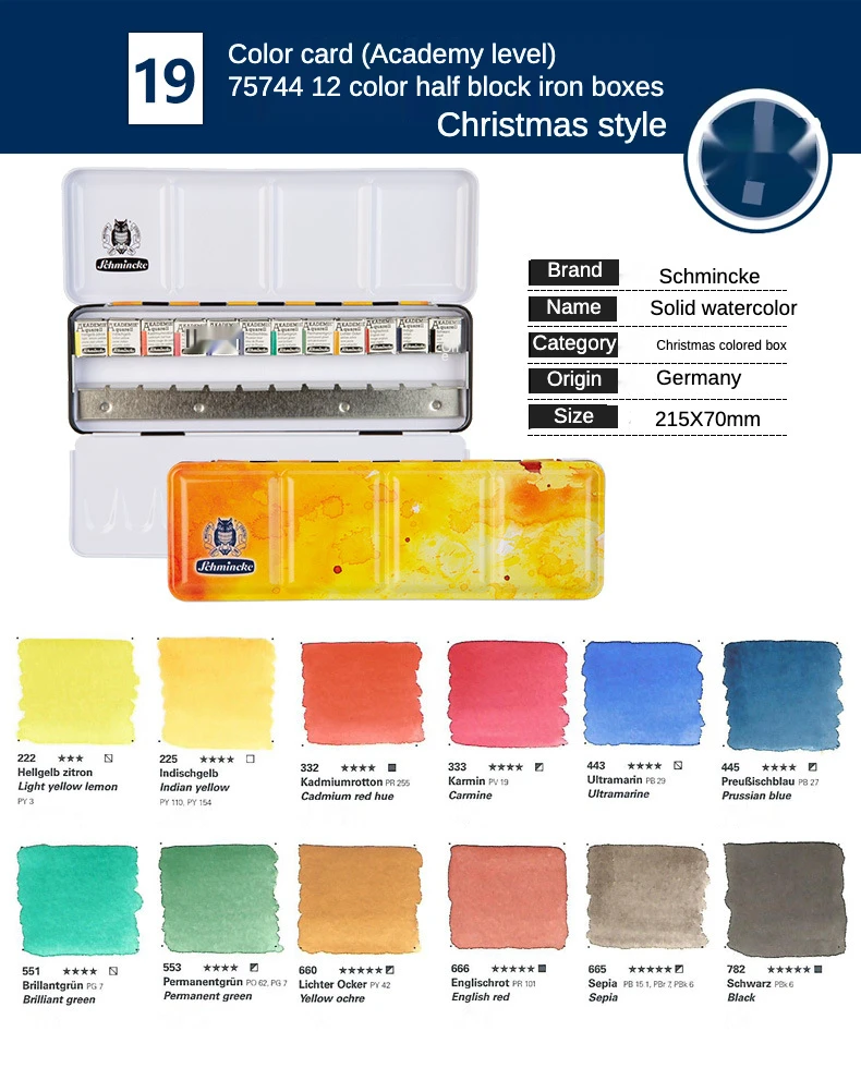 German Schmincke Solid Watercolor Paints 10/12/24 Colors Set Academy Grade Half Pans Iron Box Full Block Art Pigments Supplies