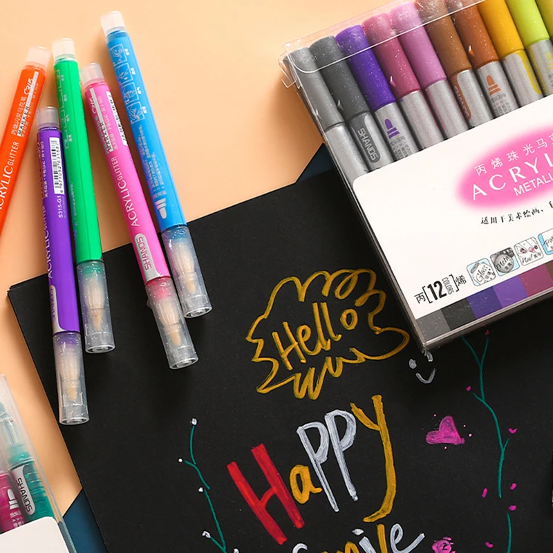 KBX 12 Colors Acrylic Paint Marker Pen waterproof painting highlighter pen Sketch Marker For graffiti body Artist DIY Stationery