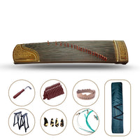 1 nanmu guzheng,1 sets of professional guzheng nails, 1 set of #1-5 spare strings, a set of sandalwood bridges, a pair of A style guzheng stands, a set of standard guzheng strings (fixed), a tuning hammer, a guzheng big bag.