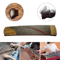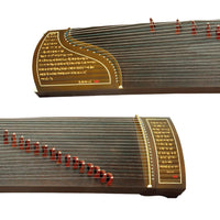 This guzheng adopts nanmu, paulownia wood, pine wood and solid wood as the main material. All the material used were of good quality and were soaked, slag removed and dried before using, which directly contribute to the smooth touch feeling and good sound of the guzheng. The carved pictures were handcrafted by professional cutlers with precise workmanship, making the guzheng exquisite and elegant as well as giving the guzheng culture connotation. The strings were covered by nylon to make the sound rich, mellow and vibrant.