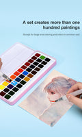 Meiliang 24/36 color solid watercolor paint set portable metal box with palette and art paint brush art supplies