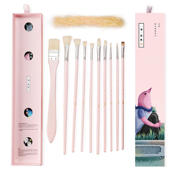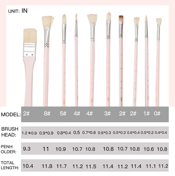 Miya himi 10 peças conjunto de pincéis de pintura artística para óleo acrílico aquarela pintura de rosto e corpo gotosa com pelos de porco, pincéis de arte profissional